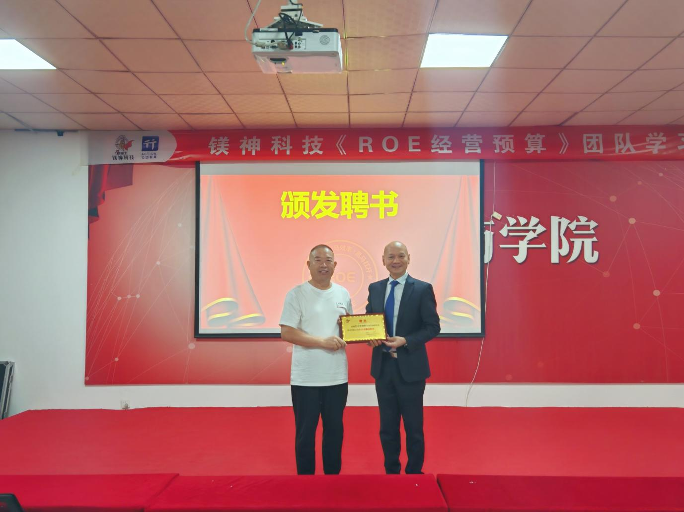本次培訓(xùn)特邀企業(yè)經(jīng)營(yíng)預(yù)算領(lǐng)域?qū)崙?zhàn)專(zhuān)家付小平老師擔(dān)任主講,付老師擁有十余年大型企業(yè)預(yù)算體系搭建經(jīng)驗(yàn),更是ROE預(yù)算系統(tǒng)的創(chuàng)始人。他深耕企業(yè)實(shí)踐、扎根一線經(jīng)營(yíng),讓其課程兼具理論高度與實(shí)踐溫度,憑借“復(fù)雜理論通俗化、實(shí)操方法工具化”的授課風(fēng)格,付老師的課程在業(yè)界廣受好評(píng)。董事長(zhǎng)兼總裁孫文為付老師頒發(fā)“ROE預(yù)算總教練”聘書(shū)。